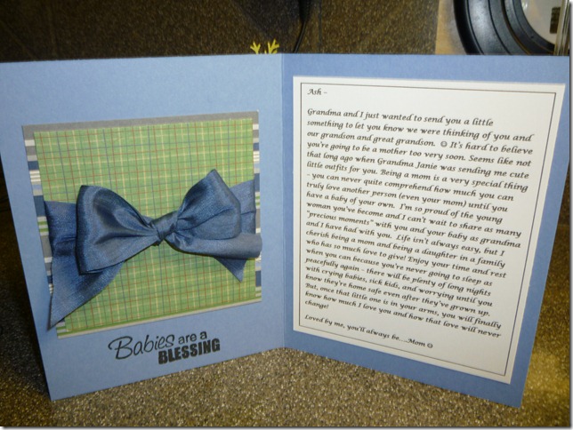 Here is the card my daughter, Theresa (Ashley’s Mom) made using the same digi image while she was here visiting … Isn’t it adorable !!! A truer sentiment was never made …. Love how she finished it on the inside too …